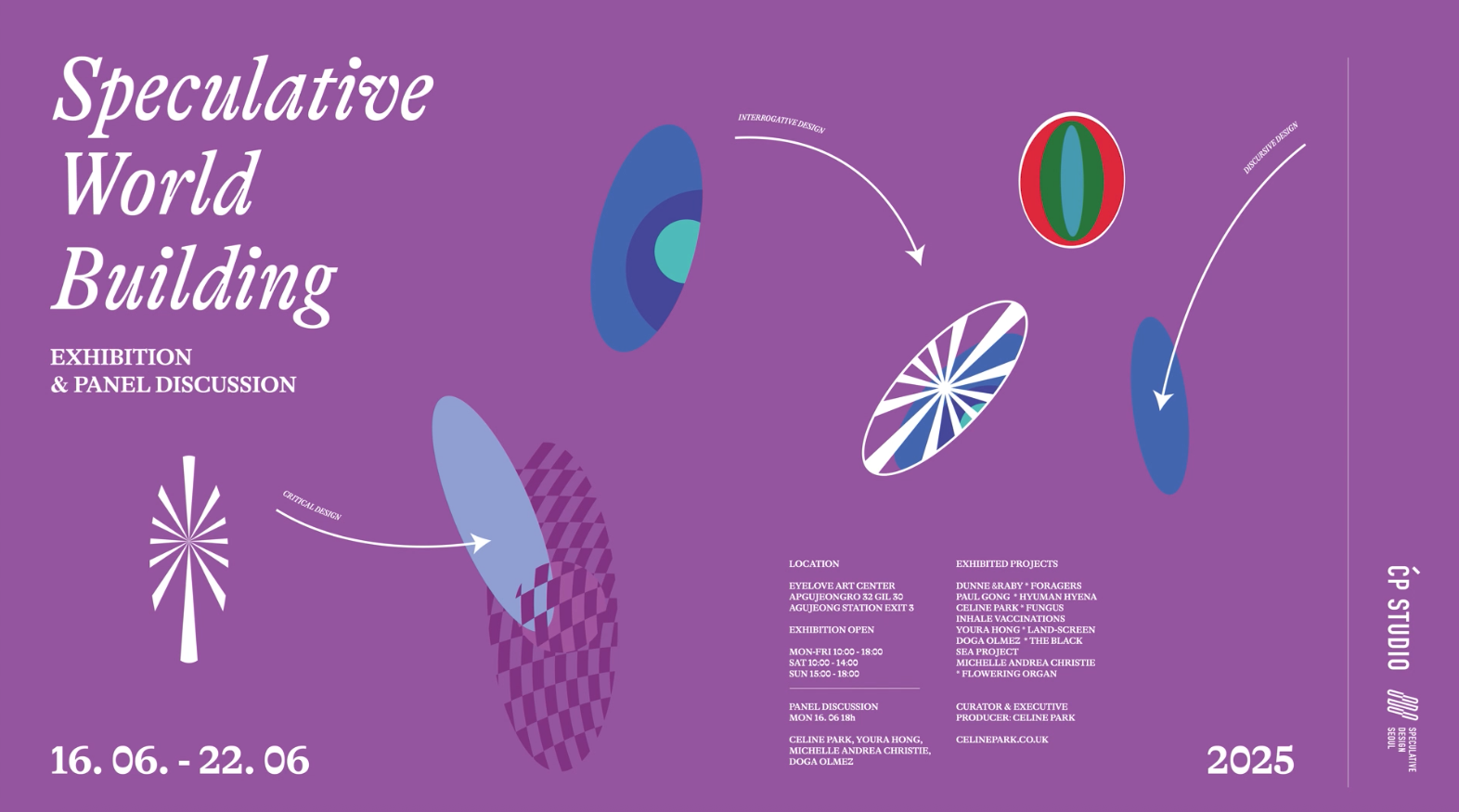이번 전시는 스페큘러티브 디자이너 셀린박이 2025년 한학기 동안 한국 예술 종합 학교(K-arts)에서 겸임교수로 진행한 스페큘러티브 디자인 (Speculative Design) 수업의 한학기를 마무리하며 기획되었다. 본 전시는 해당 수업을 수강한 학생들 중 Doga Olmez, Michelle Andrea Christie, 홍유라의 작업과 함께, 스페큘러티브 디자인을 대표하는 던앤라비(Dunne & Raby), 폴공(Paul Gong), 셀린 박, 넌휴먼 넌센스 (Nonhuman Nonsense) 등의 작품을 함께 전시하여 스페큘러티브 디자인 개념을 국내에 재차 소개하여 환기하고, 학생들의 작업 과정과 문제 인식 과정을 공유함으로써 학생 및 디자이너들에게 비판적 사고와 상상력을 자극하고자 기획되었다. 스페큘러티브 디자인은 미래를 네 가지 범주 즉 '당연한 (Probable)', '그럴듯한 (Plausible)', '가능한(Possible)', '선호하는 (Preferable)' 으로 구분하고, 미래엔 '만약에...' 라는 질문을 통해 다양한 가능성의 시나리오를 탐색한다. 이 과정은 다양한 분야의 전문가들과의 협업과 실제 연구를 기반으로 하며, 디자인을 통해 사회, 기술, 환경 등의 이슈에 대한 비판적 관점을 시각화하는데 중점을 둔다. 결국 이 접근은 미래를 예언하는 것이 아니라, 현재 우리가 무엇을 어떻게 바라보고 있는지에 대한 근본적인 질문을 던지는 교육적 디자인 실천으로 이해할 수 있다.
